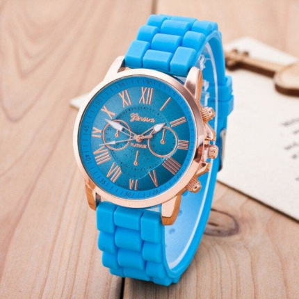 하늘색 실리콘 밴드 패션 손목시계 / 학생용 공용 패션시계 손목시계