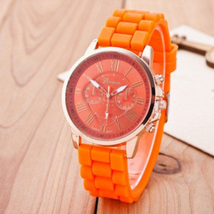 주황색 실리콘 젤리 밴드 손목시계 / 학생 아동 패션 시계