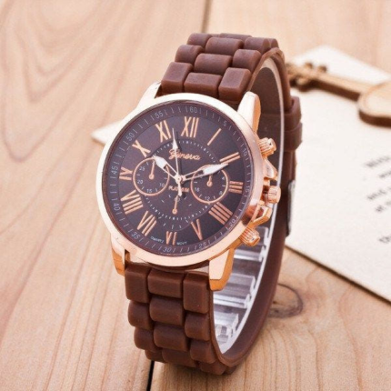 갈색 실리콘 젤리 밴드 손목시계 / 학생 아동 패션 시계