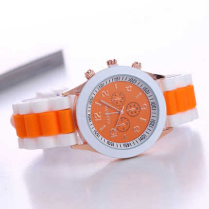 주황색 실리콘 밴드 패션 손목시계 / 학생용 공용 패션시계 손목시계