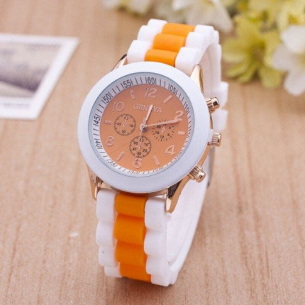 주황색 흰색 투톤 컬러 학생용 실리콘 손목시계 / 포인트 패션 시계 실리콘