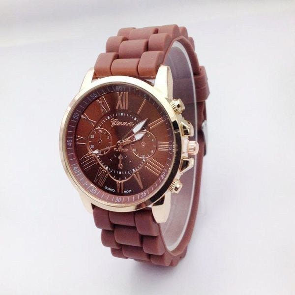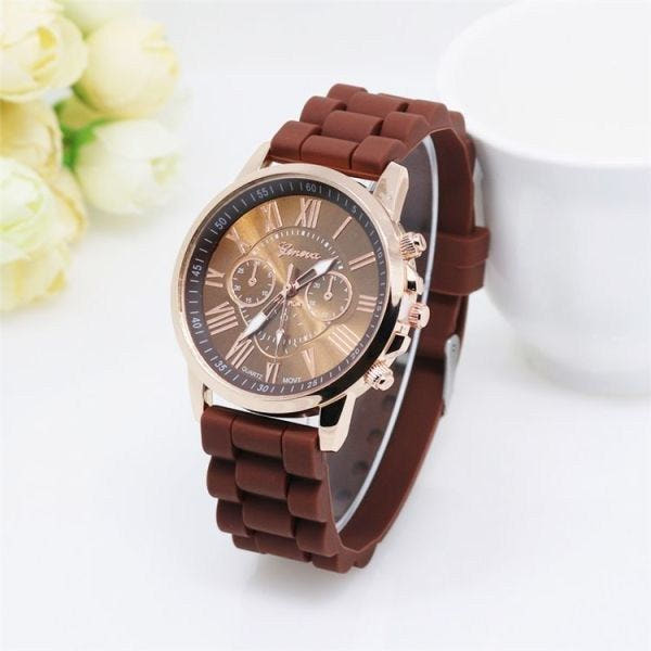 Brown Silicone Band Fashion Wristwatch / Student Unisex Fashion Watch