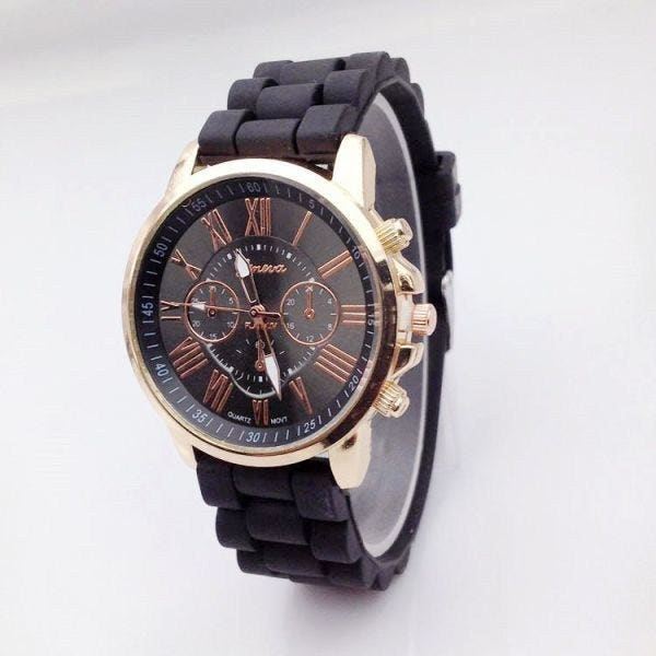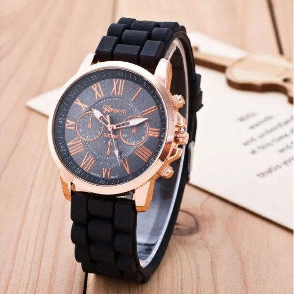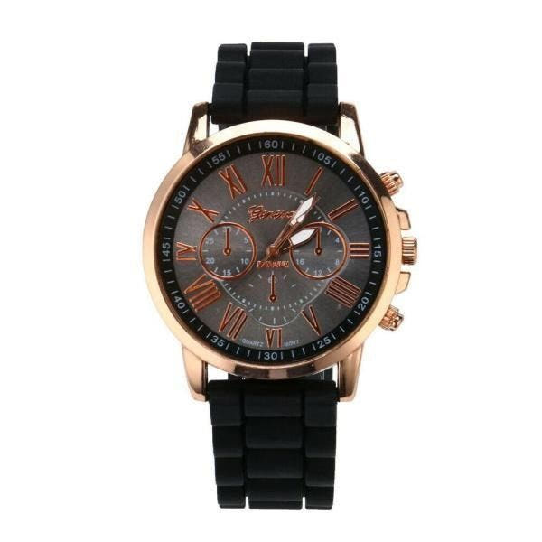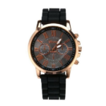 Black Silicone Band Fashion Wristwatch / Student Unisex Fashion Watch