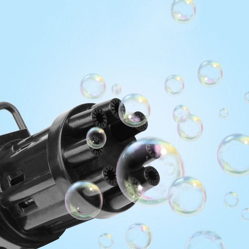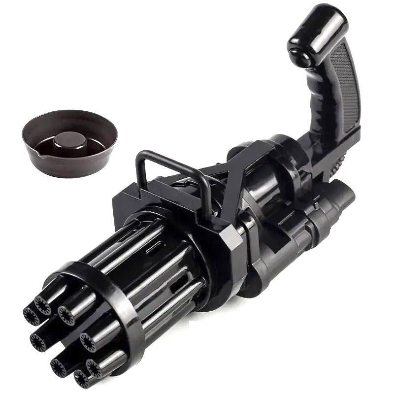 This automatic Gatling-style bubble gun features 8 nozzles that release bubbles simultaneously.