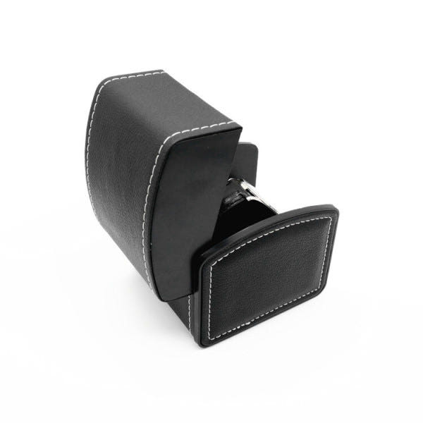 손목시계를 깔끔하고 안전하게 보관할 수 있는 단일 가죽 시계 보관함입니다. 블랙 컬러의 가죽 외관과 정돈된 스티치 라인이 어우러져 심플하면서도 고급스러운 분위기를 연출해 줍니다.