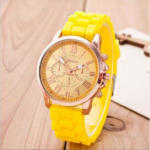 Yellow Silicone Band Fashion Wristwatch / Student Unisex Fashion Watch