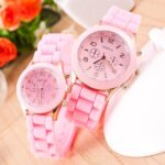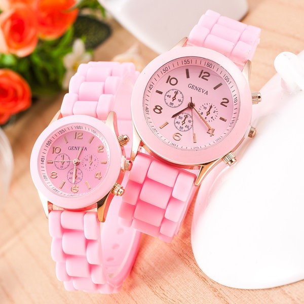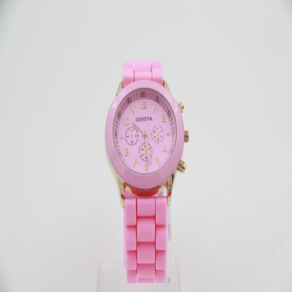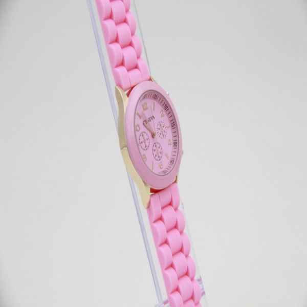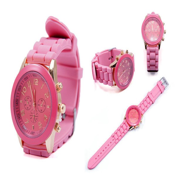 pink small student fashion wristwatch / silicone jelly band kids