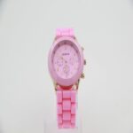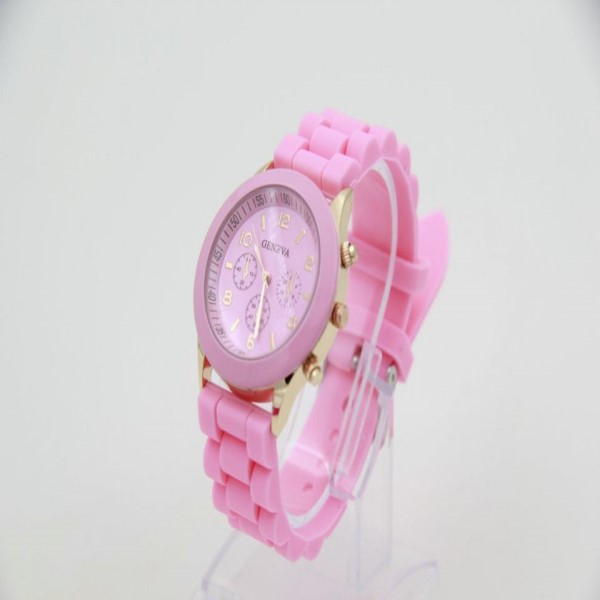 It is a fashion wristwatch with a vibrant pink color.
