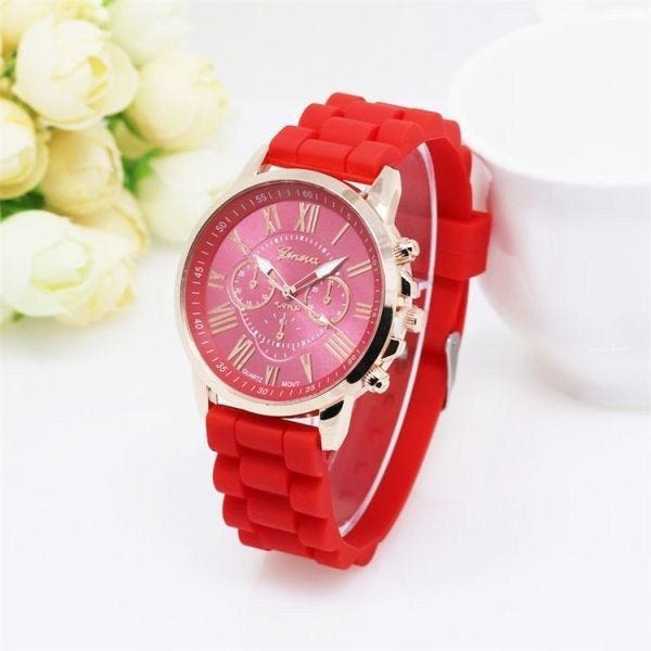 Red Silicone Band Fashion Wristwatch / Student Unisex Fashion Watch