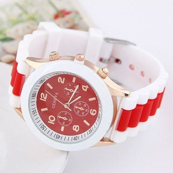 Red & White Two-Tone Silicone Wristwatch for Students / Silicone Fashion Accent Watch