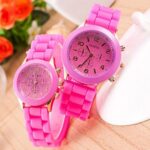 어두운 핑크색 소형 학생용 패션 손목 시계 / 실리콘 젤리 밴드 키즈