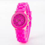 Dark pink small student fashion wristwatch / silicone jelly band kids