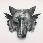 늑대 인간 콘셉트의 탈 가면 마스크입니다. 강렬한 늑대 얼굴 디자인으로 착용 시 독특하고 인상적인 분위기를 연출할 수 있습니다.