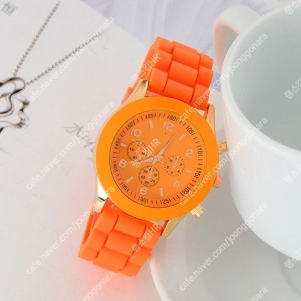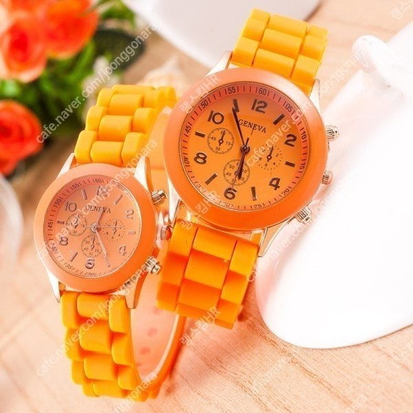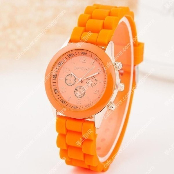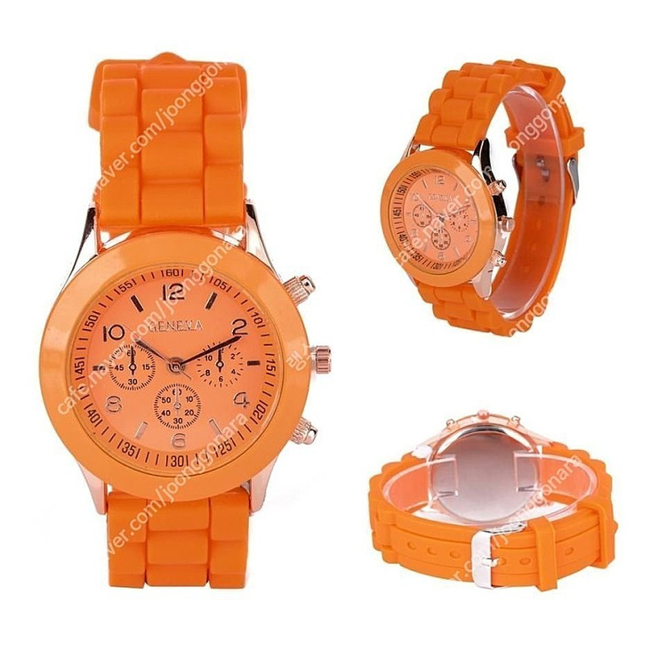 선명한 오렌지 컬러가 돋보이는 패션 손목시계입니다.
