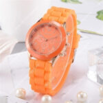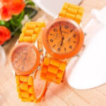 orange small student fashion wristwatch / silicone jelly band kids