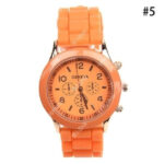 It is a fashion wristwatch with a vibrant orange color.