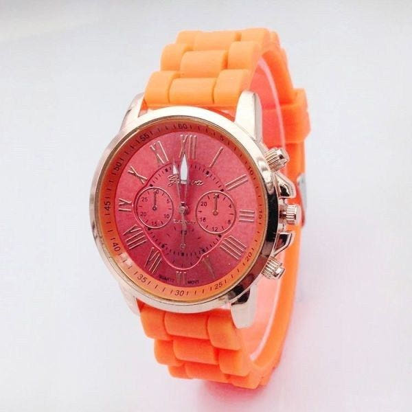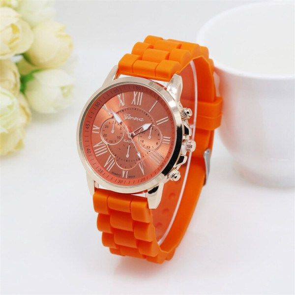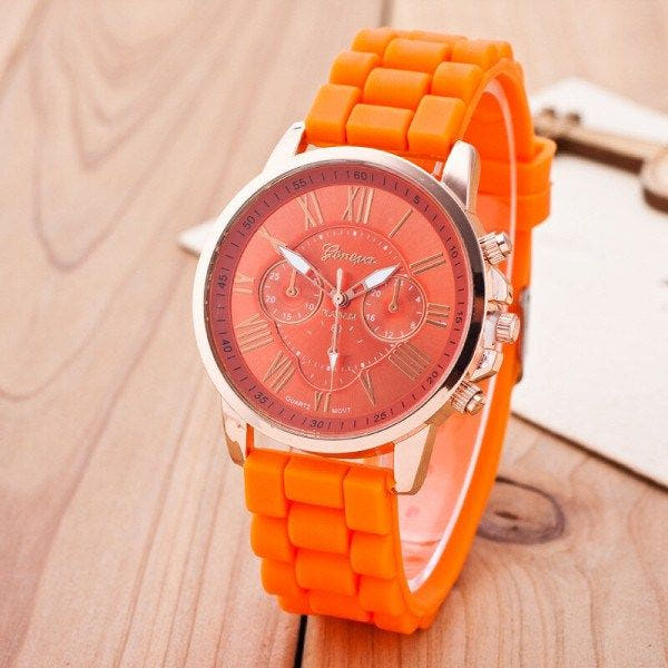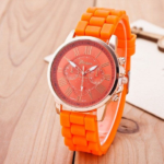 Orange Silicone Band Fashion Wristwatch / Student Unisex Fashion Watch