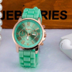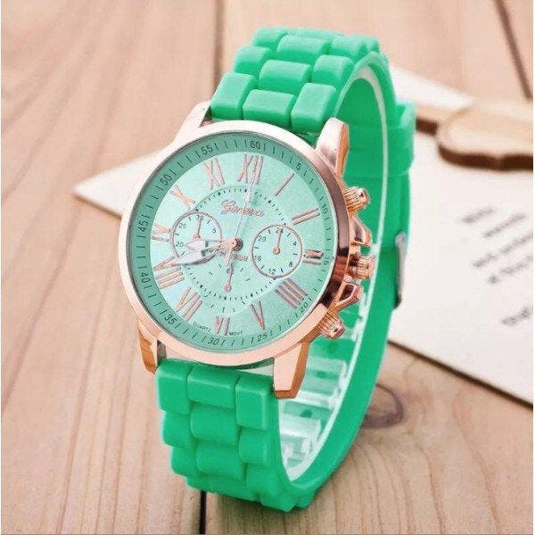 Green Silicone Band Fashion Wristwatch / Student Unisex Fashion Watch
