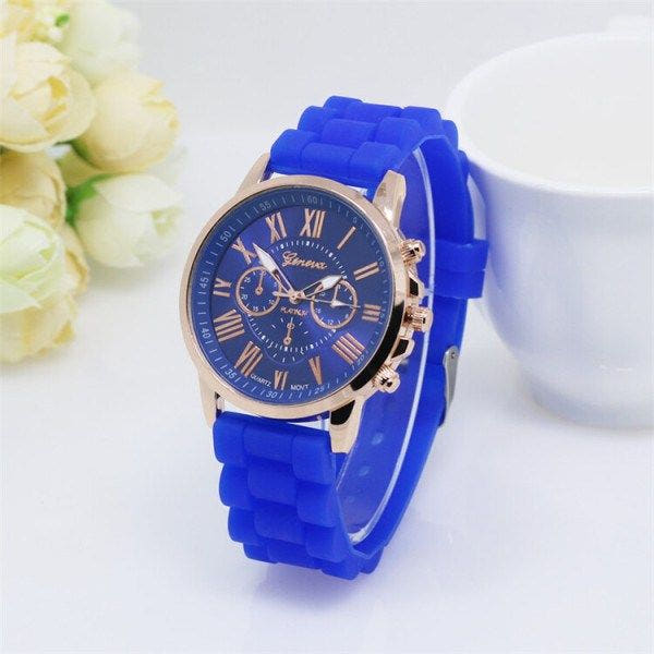 Blue Silicone Band Fashion Wristwatch / Student Unisex Fashion Watch