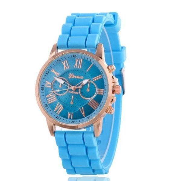 Sky Blue Silicone Band Fashion Wristwatch / Student Unisex Fashion Watch