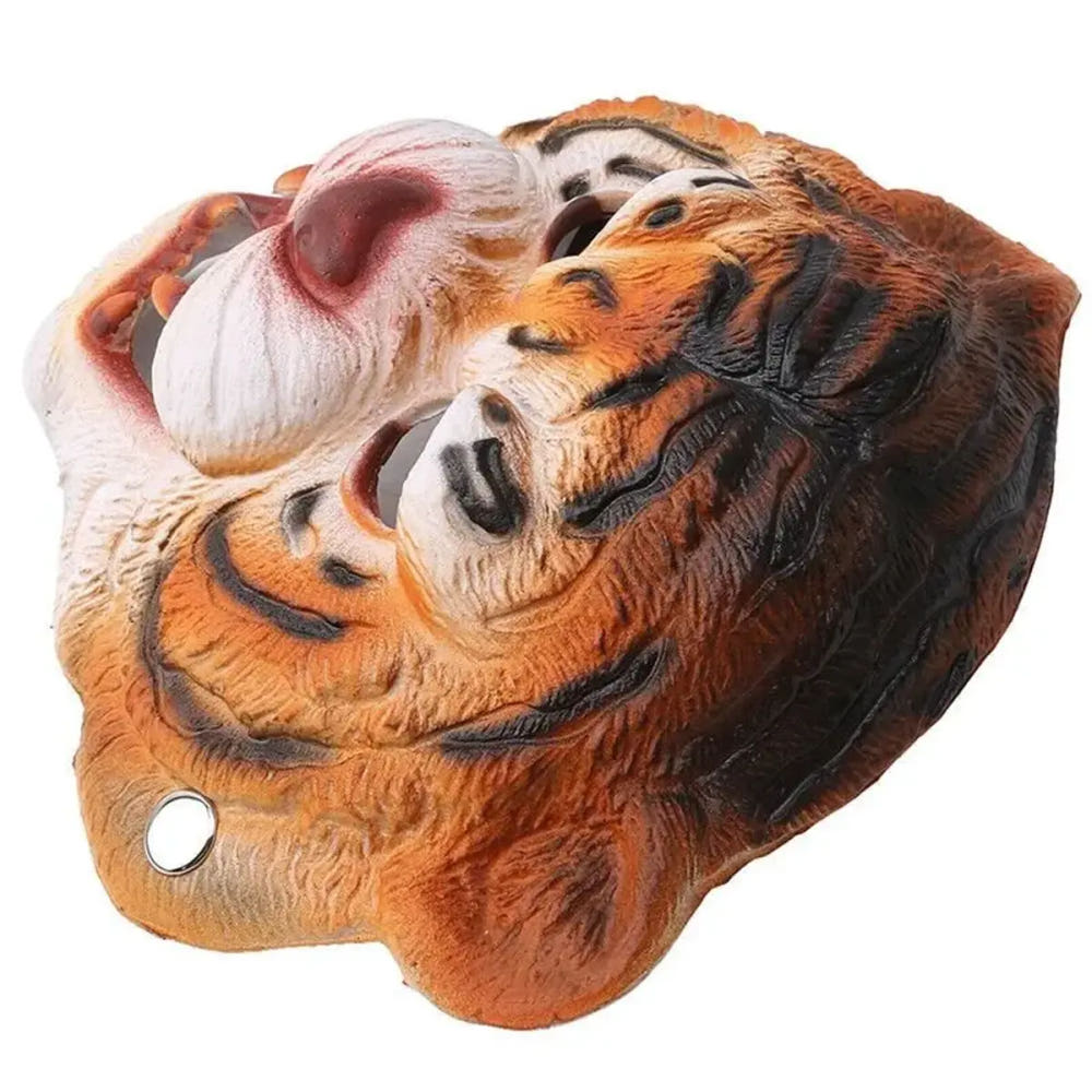 This rubber mask features a realistically designed tiger face, making it suitable for use during Halloween, theme parties, cosplay events, and photo shoots.