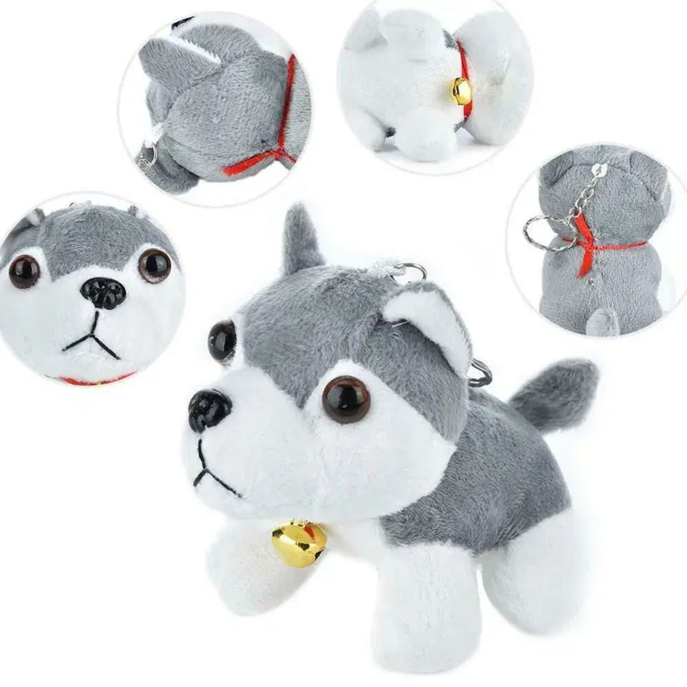This mini puppy plush keychain is a small stuffed accessory that can be easily attached to bags or keys, making it a convenient and cute key holder.