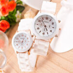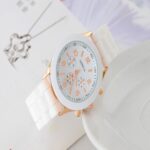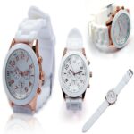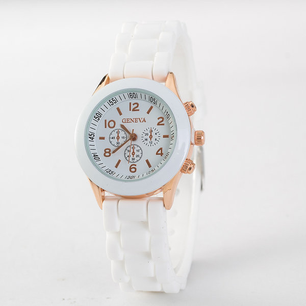 It is a fashion wristwatch with a white color.