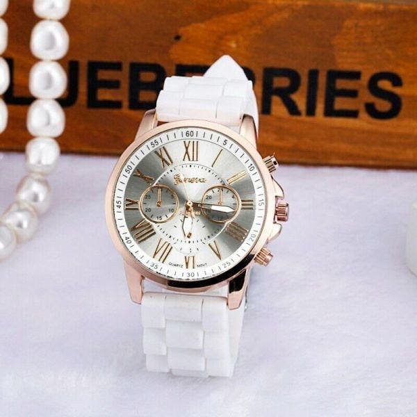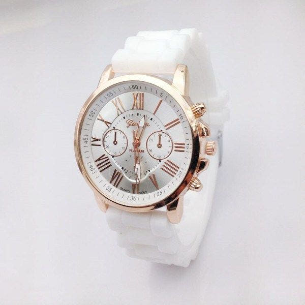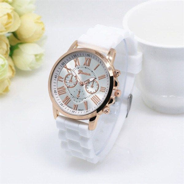 White Silicone Band Fashion Wristwatch / Student Unisex Fashion Watch