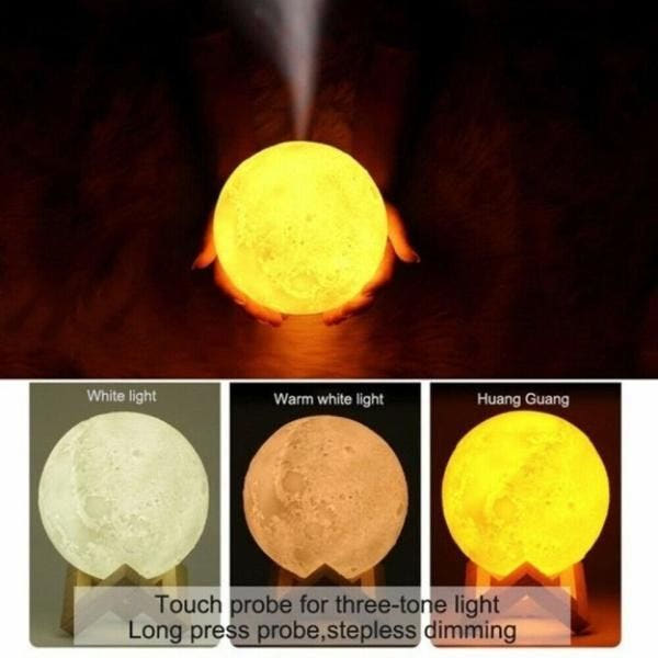 This is a 3D moon lamp humidifier that creates a soft and calming moonlight atmosphere.