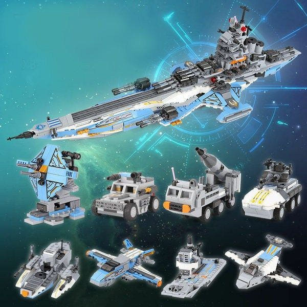 This transforming building block toy set includes a total of 872 pieces and allows you to build 8 different models.