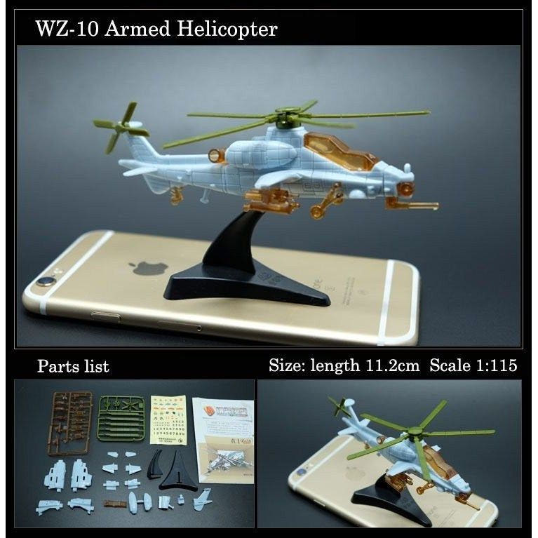 (WZ-10) 4D 밀리터리 항공기 프라모델 장난감 / 조립 피규어 블록 전투기